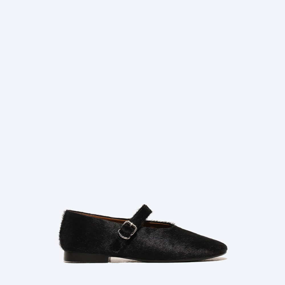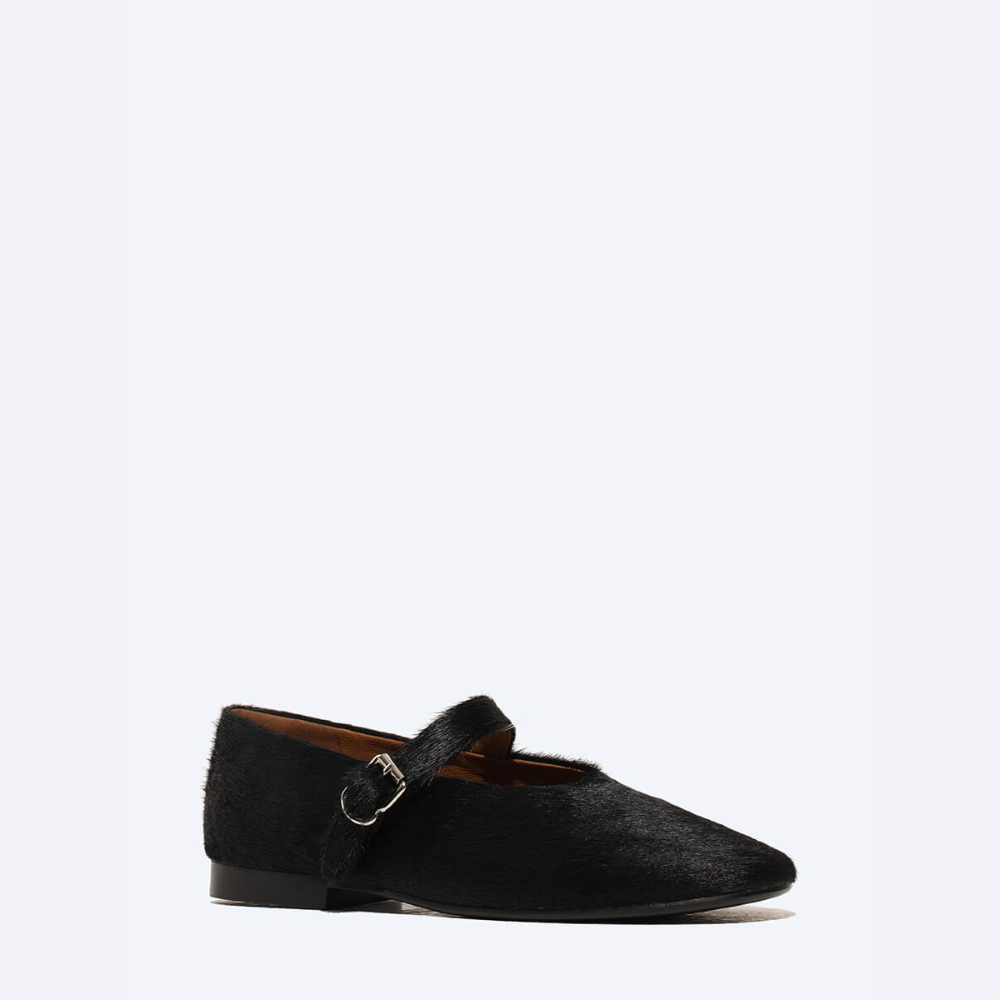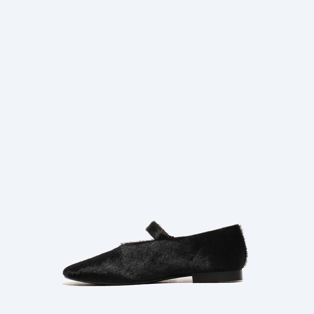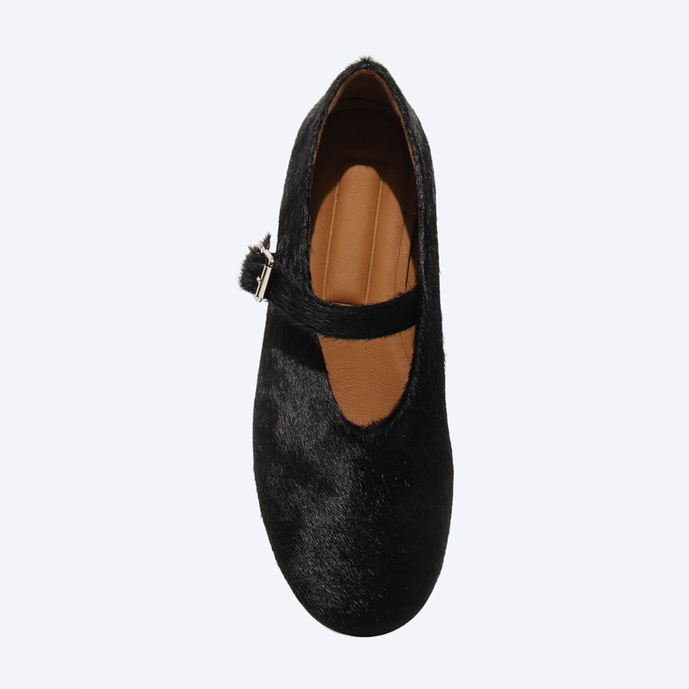 Балетки женский черный+натуральный мех (пони)