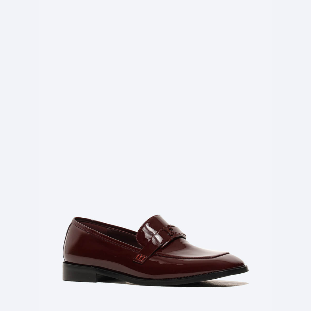 Лоферы женский бордовый+натуральная лаковая кожа