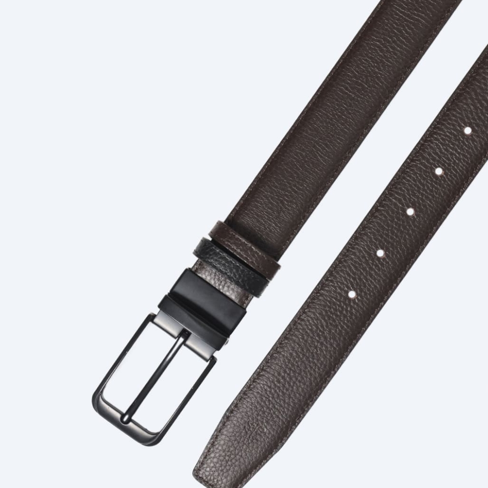 Ремень мужской коричневый/черный+натуральная кожа